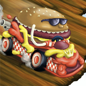 Fast Food Racing is a funny racing game starred by Trendy Frie and Hamburg Hypster. It features 24 levels in 4 graphically delicious zones (Burger Wing, Pizza Hat, Burpin' Donuts, Ken & Jerry's).