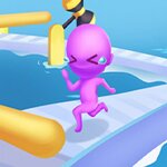 We welcome you to the hottest platform race of the year! Wear your giant-headed baby suit and swallow your fear of water or heights; the race is about to start! Do not let the funny looks of the players fool you; these people have everything one might need to pass these levels. Take your position and wait for the race to start. Click with your mouse or tap on your device’s screen to start running. Time your moves according to the obstacles on the platform and keep your player in the game. Do not let the panic stop you; falling off the track does not mean failure! Do not lose any seconds, and get up on your feet again. Complete the race in the top two and pass to the next stage. Collect gold coins by winning races and logging in every day, and unlock new skins to reflect your style through your character!