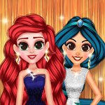 Six different princesses mean six different wardrobes full of amazing outfits and fashion pieces. It's your time to shine as a stylist in this game, so roll up your sleeves and start! There are two steps for giving a makeover for each girl. First, you have to apply make-up. You will see a menu on the right side of the screen on this step. You can select and change a girl's lipstick, blush, eyeshadow, and eye color. Once done, click on the button at the bottom and you can move on to the next step! In this step, you can pick accessories such as a necklace, earrings, and a purse. Pick an outfit from different options and finalize the look with a lovely hairstyle. Complete all these steps for each girl to finish the game! Have fun playing!