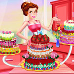 A birthday is over and another one begins. Our princess is really good at cooking that everyone just drools over the things she makes. If she opened a sweet shop, we are pretty sure people would line up at the door. But she's feeling kinda tired today, so she needs a bit of help. Let's roll our sleeves up and go help her! We're going to make a 3-tier birthday cake. First, decide on the flavor. Do you want to make a chocolate cake or try something else? After that, you can choose the cream, put the icing on and decorate the cake with the yummy toppings that you want. If you want to make it look even more glamorous, you can click on the button at the bottom of the screen. You can even change her outfit by clicking the third button at the bottom of the screen. Oh, the cake is ready, and it looks so mouth-wateringly delicious. All thanks to you!