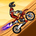 In this motorbike game, you must get your motorbike and race against your rivals. What is more important than being faster than your rivals is to be careful with your moves. In your stunt motorbike, you need to keep your balance well set. Otherwise, you can easily fall off your motorbike which will cost you time. Still, when you fall off your bike, you can easily get up and hop on your motorbike again. If you repeatedly stumble on the little dunes or hit your rivals, you will have to start from the beginning, though. You can easily change your lane by sliding your character up or down. This means you will have to quickly change the lanes whenever something gets in your way. When you get your speed and drive an uphill which will lead you to a cool flight downhill, you need to control your motorbike with the arrows on the down left of the screen. This way, you can either make your stunt moves like a 360-degree flip or try to land on the road safely. So, get on your bike and be ready to monitor your character as safe yet as cool as possible!